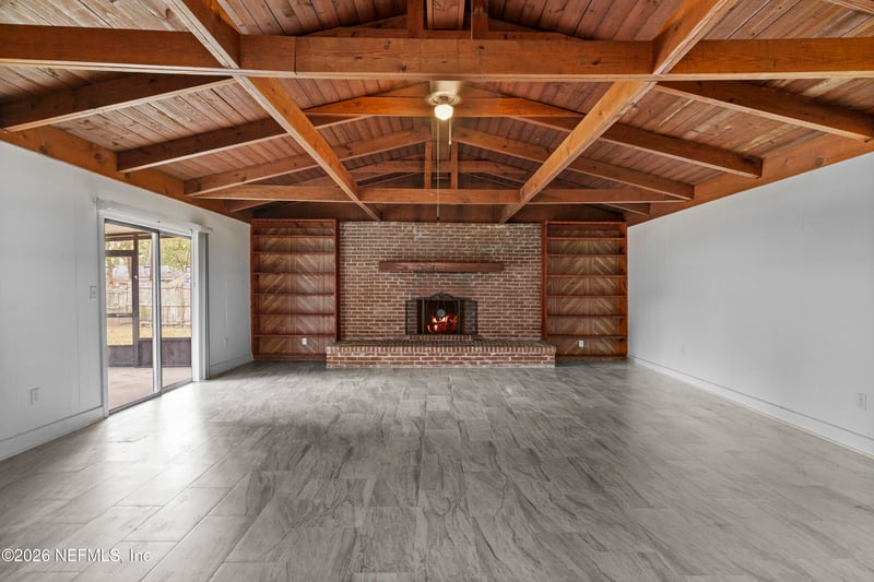 Listing details for 2697 Tina Ln, Middleburg, FL 32068 : Step into peace of mind with this solid brick and concrete block home with a 1 car garage, beautifully renovated with modern value. A massive open living area welcomes you with an abundance of natural light, LVP flooring, fresh interior/exterior paint, and updated light fixtures throughout the home. The new kitchen features modern gray cabinetry, refreshed countertops, and upgraded fixtures, flowing seamlessly into two separate spacious living areas. The second living room is a true standout, perfect for hosting gatherings or cozying up by the brick fireplace, complete with vaulted wood-beam high ceilings and a wet bar--an entertainer's dream. Not only are the rooms spacious and updated, but so are the modern tiled bathrooms with amazing finishes. A 2014 roof with no leaks & life left, 2025 water heater, & a 2019 HVAC system, giving you peace of mind. Don't forget the generous fenced in yard with a screened in porch and spacious backyard with room for a backyard oasis.