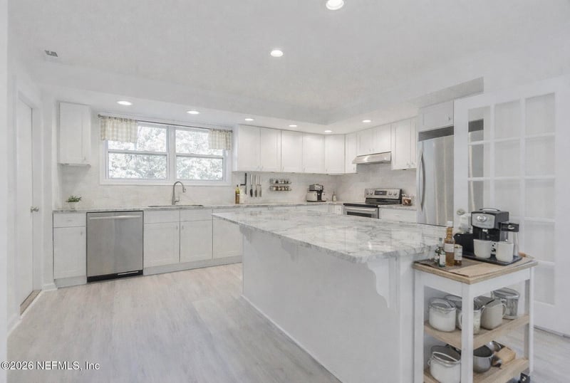 Listing details for 2754 Rainbow Rd, Jacksonville, FL 32217 : Completely renovated home to include kitchen, bathrooms, LV floors, appliances, new windows throughout the entire house and a new roof in 2026. Separate entrance to downstairs bedroom and bathroom can be used as an In Law Suite. This home is turn key ready to move it!