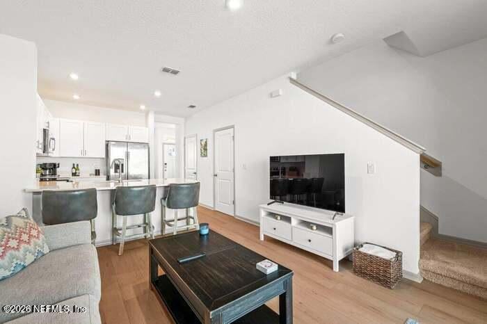 Listing details for 281 Annies Pl, Jacksonville, FL 32218 : OPEN SAT 4/18: 11-1pm! The best value in Annie's Walk! This bright, open-concept townhome is now priced for an immediate sale - perfect for buyers looking for a modern move-in ready home. Step into this beautifully upgraded Corfu model townhome in Annies Walk, offering the perfect blend of comfort, style, and flexibility. The first floor features a spacious Flex Room that works perfectly as a Dining Room or Home Office, along with a covered patio ideal for relaxing outdoors. NEW Luxury Vinyl Plank flooring enhances the main level, and the Powder Room has been refreshed with a new Vanity with Wood Vanity, a Black Faucet, and a modern Black-Framed Mirror. The Kitchen is designed to impress with Quartz countertops, white cabinetry, and stainless steel appliances. Upstairs, both Bedrooms offer the convenience of their own private Bathrooms and Walk-in Closets, with ceiling fans added for year-round comfort. Each Bathroom includes Tile flooring, Quartz countertops, white cabinetry, and updated Black Faucets for the Sinks and Tubs for a clean, contemporary look. Residents of Annies Walk enjoy access to a community Pool, Playground, and Dog Park, and the location provides quick access to I-95, I-295, and River City Marketplace, making daily errands and commuting a breeze. This pristine townhome is ready and waiting to be seen. Come take a look and make it yours!