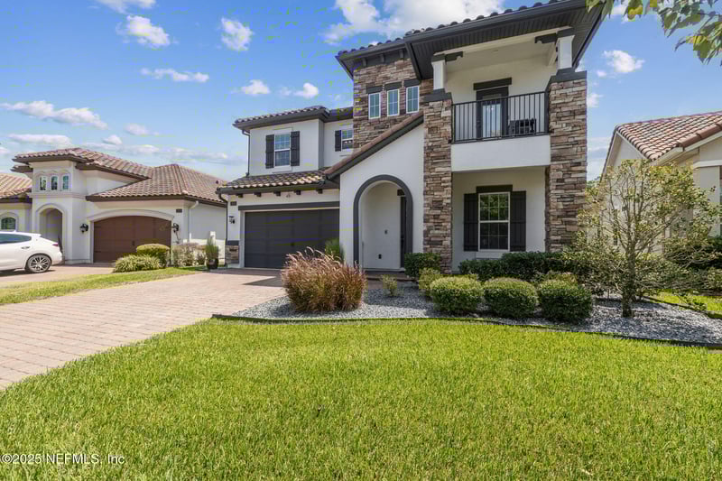 Listing details for 2831 Preveza Ct, Jacksonville, FL 32246 : Stunning Lakefront Home with Designer Upgrades & Outdoor Entertaining Spaces. This beautifully updated 4 bedroom, 3.5 bath home is situated on an oversized lot with serene lake views and room for a pool. Featuring new luxury vinyl plank White Oak flooring and fresh interior paint, this home blends modern elegance with comfort. The gourmet kitchen boasts white perimeter cabinetry & a black island, granite countertops, stainless steel appliances, a gas cooktop with hood vent, and wall ovens, perfect for any home chef. The kitchen opens to a spacious dining area and great room with a coffer ceiling, ideal for entertaining. Enjoy Florida living year-round with a covered and screened patio featuring paver flooring and a fully equipped summer kitchen, plus an adjacent open courtyard for expanded outdoor gatherings.Additional highlights include: Freshly painted exterior with concrete tile roof, stone accents, corbels, shutters and covered balcony for added curb appeal. A fully fenced backyard is great for pets and play. Convenient downstairs flex room with double pocket door acts as office, memorabilia or hobby /play room. Upstairs laundry room offers Samsung Washer/Dryer and abundant cabinetry. There is ample storage throughout the home. The tidy garage is complete with Epoxy Flooring & Garage Cabinetry. This move-in-ready home offers luxury, space, and functionality in a picturesque setting. Tamaya is a gated community complete with World-Class Resort Style Amenities in a Super location only 6 miles to the Beach, 6 miles to St. Johns Town Center, 3 miles to Mayo Clinic and an easy commute to Downtown and the Airport.