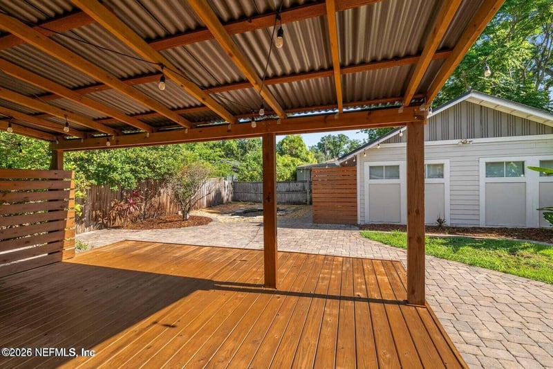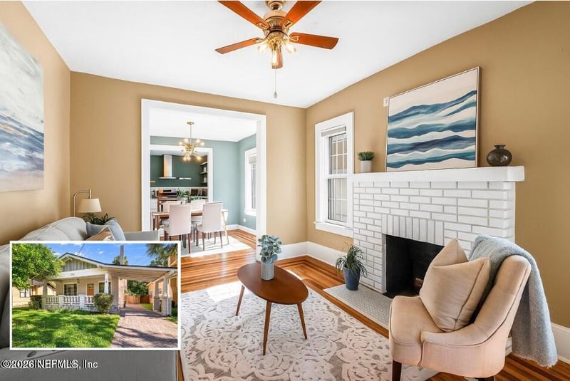 Listing details for 2887 Selma St, Jacksonville, FL 32205 : Beautifully preserved (yet fully updated!) historic Riverside bungalow with a renovated detached studio apartment complete with full kitchen, bathroom and living space ideal for rental income, guests, or a private office/play space. This RAP-certified home showcases original hardwood floors, a classic brick fireplace, + timeless charm, paired with modern updates including a stunning renovated kitchen and bathrooms, updated plumbing (to the street), and updated electrical throughout. Enjoy peace of mind w/ a 2023 Termidor treatment, new gutters, underground drainage system, + sump pump. The low-maintenance backyard features pavers throughout, a tranquil koi pond with new pump, raised garden beds, + an outdoor storage shed. Relax on the spacious covered front and back patios. Roof and HVAC ~9 y/o. All the charm of Riverside, just steps from parks, shops + dining with a great location on a quiet, tree lined street. A truly special property!$4K credit towards buyer closing w/ pref. lender