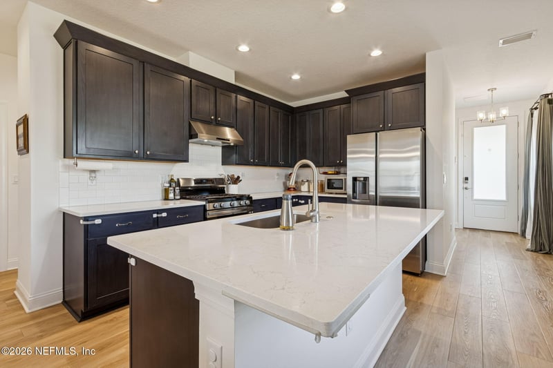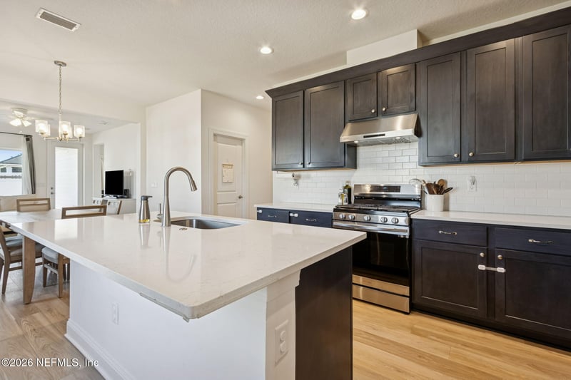 Listing details for 290 Creekmore Dr, St Augustine, FL 32092 : Welcome to 290 Creekmore Dr — a bright, modern home with a clean coastal feel and a layout made for easy Florida living. From the curb, you'll love the paver driveway, charming covered front porch, and the extended 2-car garage that adds extra space for storage, hobbies, or gear. Inside, the home opens into an inviting open-concept main living space filled with natural light and finished with LVP flooring throughout. The kitchen is a standout, featuring quartz countertops, poplar cabinet fronts, a large center island, stainless steel appliances, a sleek range hood, and smart functionality like a pull-out trash cabinet—perfect for both everyday living and entertaining. The dining and living areas flow seamlessly, creating a comfortable space to gather. The split-bedroom layout offers privacy, with well-sized secondary bedrooms and a spacious primary retreat. In the primary bath, enjoy an upgraded double shower with dual shower heads for a spa-like start (or end) to your day. Set in a growing area with everyday conveniences close byPublix, shopping, dining, and medical officesthis home is also positioned for easy commuting between Jacksonville and St. Augustine, with quick access to I-95 and the new expressway improvements coming nearby for even more connectivity.