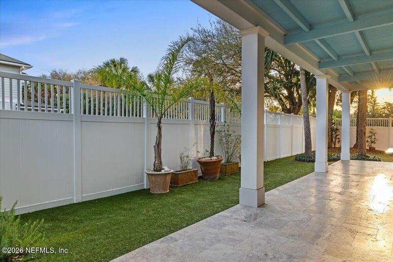 Listing details for 2920 Isabella Blvd, Jacksonville Beach, FL 32250 : Beautifully Inspired by Charleston and Key West Architecture. Home located in a quiet neighborhood on a dead-end street with great, friendly neighbors. The lot is bounded by vacant city owned land to the south and west, providing privacy and openness. The south facing porches are open to the warming low winter sun and protected from the cold north winter winds. In the summer the porches are shaded from the high hot summer sun and open to the cooling south and the southeast breezes. The live oak trees provide protection from morning and evening sun as well as shade in the backyard and house from the hot west sun in summer. The 8' vinyl fence at the rear and south side yards provide privacy. The solid filled concrete block walls at both floors provide hurricane resistant strength well as insolation from outside noise. The walls also provide thermal mass which holds the warmth or coolth. Concrete walls are termite proof and rot proof. The exterior is fiber cement- Hardie Plank lap siding. are termite proof and rot proof as well. The standing seam galvalume roof with concealed fasteners is considered a 40 - 50 year roof and avoids replacing a shingle roof every 15 years as required by insurance companies. The synthetic lawn requires no irrigation or maintenance; mowing, weeding, nor spraying. The house is easy walking distance to the beach, shopping, restaurants, banks, Drs. Offices and Hospital. House is energy efficient, spacious large rooms, First floor offers 10' ceilings and the second floor offers 9' ceilings.This house offers, Large spacious rooms, high ceilings, solid energy efficient structure, no yard maintenance and surrounded by 2 empty lots/spaces. Custom Design.