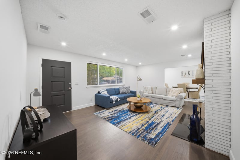 Listing details for 2925 Bethel Ct, Jacksonville, FL 32207 : Step into a warm, inviting home filled with natural light, neutral tones, and a layout that feels open yet cozy. Featuring luxury vinyl flooring throughout, a beautifully updated kitchen with white quartz countertops, and modern LED mirrors, every detail has been thoughtfully designed. Downstairs offers two bedrooms, a full bathroom, and a versatile open flex space--ideal for a home office, reading nook, or play area. Upstairs, enjoy a private and spacious primary suite with its own bathroom and double sink vanity. The garage includes durable epoxy flooring and a convenient half bath. Ideally located just minutes from San Marco, about 25 minutes to Jacksonville Beach, with easy access to I-95. Close to Publix and Aldi, within walking distance to Douglas Anderson School of the Arts, this home blends comfort, style, and convenience--perfect for your next chapter.