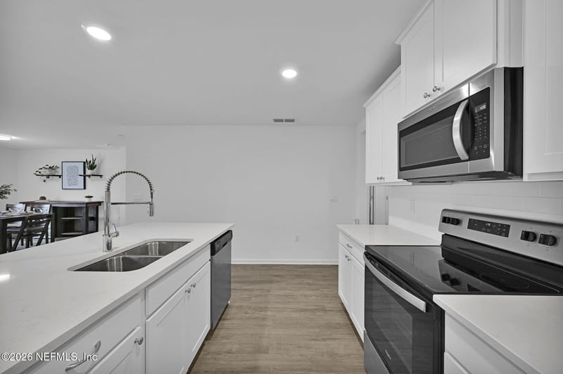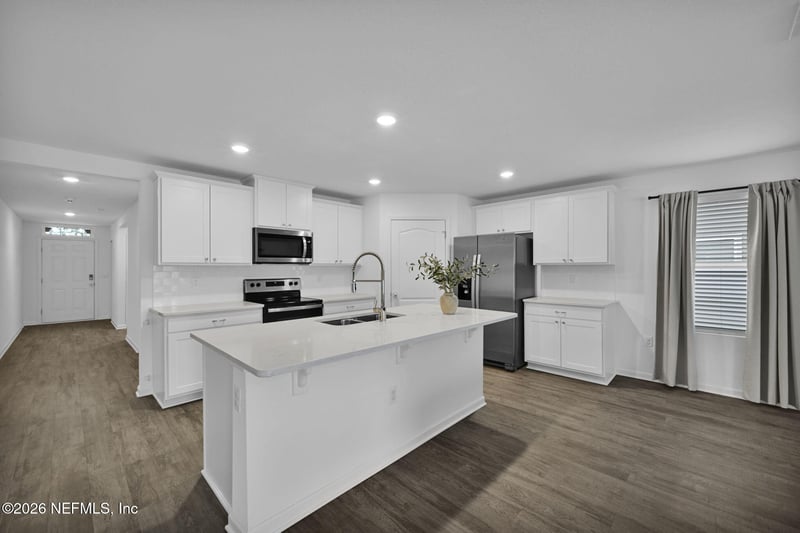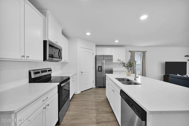 Listing details for 2931 Duck Hollow Ln, Green Cove Springs, FL 32043 : This gorgeous home already has everything done, so you can move right in! The kitchen features quartz countertops, tile backsplash, and premium white cabinetry with 36'' uppers and crown molding. Quartz countertops in both bathrooms create a consistent, modern style throughout the home. You'll notice right away there's NO carpet anywhere — just durable luxury vinyl plank flooring throughout, giving the home a seamless, low-maintenance feel. The stainless steel refrigerator, washer and dryer are all included, so you can move in without a long to-do list. What really sets this property apart is what's already been added: gutters, vinyl privacy fencing, water softener, blinds, alarm system, pantry built-ins, termite protection, and an upgraded heat detector. Located in Cross Creek, you're zoned for Clay County's top-rated schools and just minutes from Fleming Island's everyday shopping and dining. Naval Air Station Jacksonville is approximately a 25-minute drive, making commuting straightforward. The community's resort style amenity center includes a clubhouse, pool, fitness center, and sports courts, adding extra space to unwind or stay active close to home!
