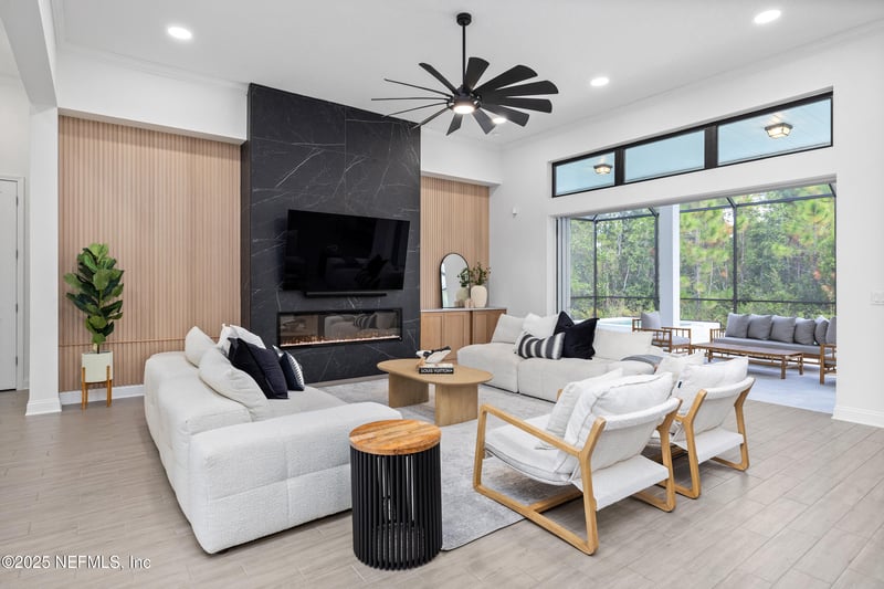 Listing details for 306 Tortola Way, St Johns, FL 32259 : Experience the ultimate Florida lifestyle in Seaside Estates, the exclusive gated enclave of Beachwalk. This nearly 3,200 sq ft single-story home was designed for effortless modern living. Expansive sliders fully open to merge the sleek open-concept interior with the resort-style outdoor oasis--perfect for entertaining, poolside dining, or relaxing with friends. With 12-ft ceilings, 4 bedrooms, 3 baths, and 3 flex spaces, there's room for a gym, dual offices, or multi-gen / mother in law suite. Enjoy a heated saltwater pool + oversized spa, leathered Akoya marble pavers, custom fireplace, built-ins, butler's pantry, and an oversized 4th bedroom ideal for guests or in-laws. A 3-car epoxy-floor garage, extended driveway, reverse-osmosis + water-softener system, and designer finishes throughout make this home truly turnkey. Just steps from Beachwalk's 14-acre crystal lagoon, swim-up bar, dining, fitness, and top-rated St. Johns county schools, this is modern resort living at its finest.