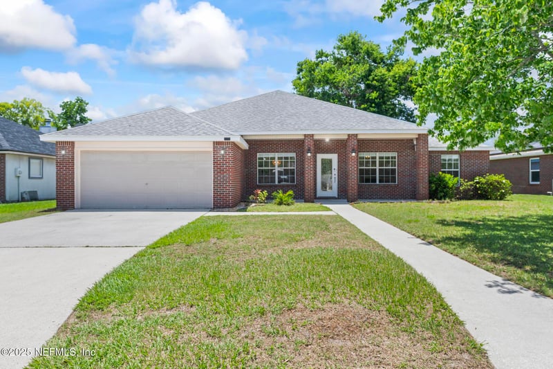 Listing details for 3174 Highland Grove Dr, Orange Park, FL 32065 : Magnificently Immaculate Recently Renovated One-Level Front-Faced Bricked Home! Ideally situated in the quiet community of Highland Grove in Clay County, just moments from Moody Avenue Park, this 3/2/2, 2,087 sqft residence offers a leisurely lifestyle of comfort, style, and convenience. This spacious split-floor plan home, which boasts a classically timeless aesthetic, welcomes with its traditional red brick façade, verdant lawn, inviting covered front porch, and serene screened-in lanai. Overflowing with soft natural light, the pristine interior showcases a beveled glass front door, high ceilings, fresh neutral paint, stylish arched entryways, and updated modern faux wood flooring throughout. The refined formal dining and living rooms each come adorned with elegant chandeliers, while the spacious family room centers around a charming brick fireplace. Designed for both functionality and style, the fully equipped, semi-open concept kitchen exudes modern elegance with updated cabinetry, stainless steel appliances, and an inviting breakfast nook perfect for casual dining. Secluded for ultimate privacy, the expansive primary bedroom embodies contemporary luxury with direct access to the screened-in lanai, an oversized walk-in closet, and a lavish spa-inspired en-suite bath, which includes dual vanities and a sleek glass-enclosed step-in shower. On the opposite side of the home, two additional bedrooms with generous closets, one of which also provides direct access to the lanai, share a full hallway bathroom with a shower/tub combo and a spacious vanity for ample storage. Sliding glass doors open to a tranquil screened-in lanai that overlooks the private, fenced backyarderfect for relaxing or entertaining. Conveniently located close to NAS JAX, shopping, restaurants, top-rated schools, medical facilities, entertainment, and more! Schedule your private showing today!