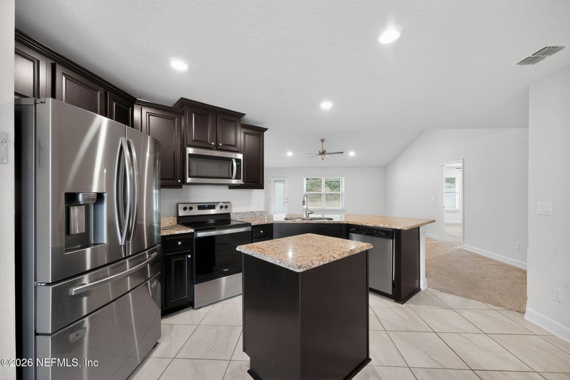 Listing details for 3180 Noble Ct, Green Cove Springs, FL 32043 : Please view the Virtual tour ! Move-in-ready, 2020 all-brick home in gated Edgewater Landing offers a second chance at ''like-new'' luxury. It features a recent price improvement and has already passed inspections. The chef-inspired kitchen, features 42-inch cabinets, premium granite countertops, and a wrap-around breakfast bar that flows seamlessly into the living area--perfect for entertaining from day one. All appliances are included, and the primary suite offers a true spa experience with ''his and her'' closets and an ensuite bathroom featuring dual granite countertops and a custom walk-in tile shower. Beyond the walls of this pristine home, you'll enjoy a large, private backyard with a 10x14 covered patio, plus incredible community perks including a community dock and a dedicated RV and boat storage lot.