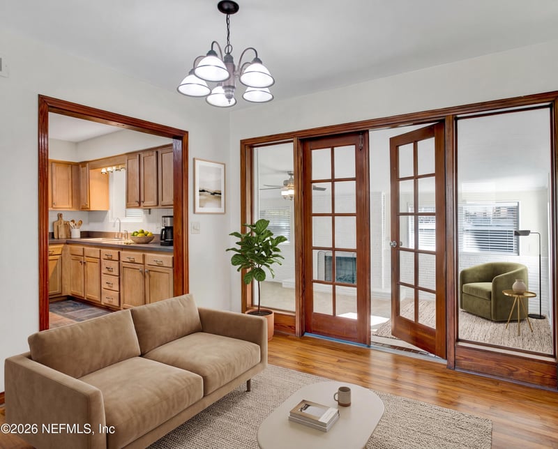 Listing details for 321 Tidewater Cir, Jacksonville, FL 32211 : Welcome to this beautifully maintained 3-bedroom, 2-bath home filled with natural light and warm, inviting finishes throughout. From the moment you walk in, it simply feels like home--comfortable, bright, and easy to love. The main living areas feature hardwood floors throughout, adding both elegance and durability. The bright, functional kitchen offers ample storage, updated appliances, and a clean, practical layout--perfect whether you're cooking your first meal at home or hosting friends and family. One of the standout features is the finished back porch with a fireplace, creating a cozy, year-round space to unwind--morning coffee, quiet evenings, or weekend gatherings. Updated bathrooms add a fresh, modern touch. Step outside to a quiet backyard, ideal for relaxing, pets, or simply enjoying your own private space. Updated roof, HVAC system, and kitchen appliances,Whether you're buying your first home or simply looking for a place this will sure appeal to you.