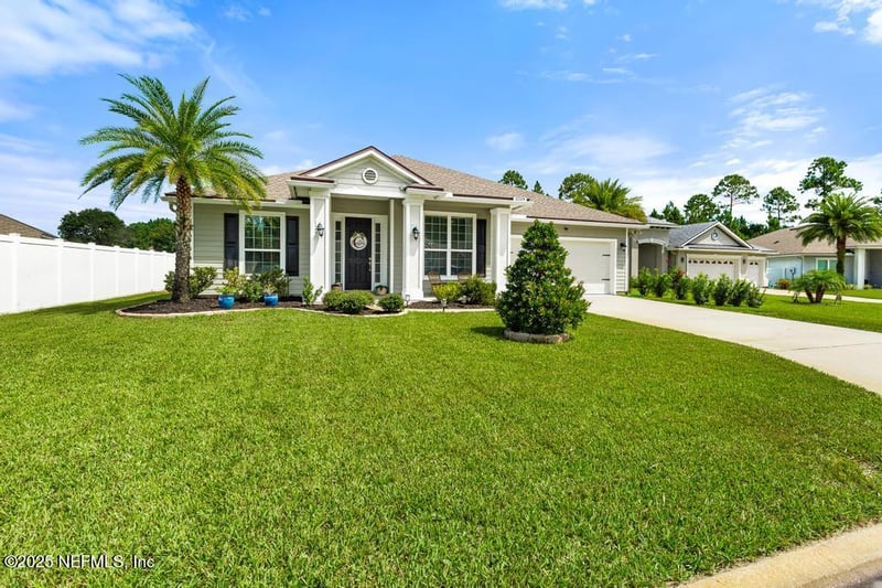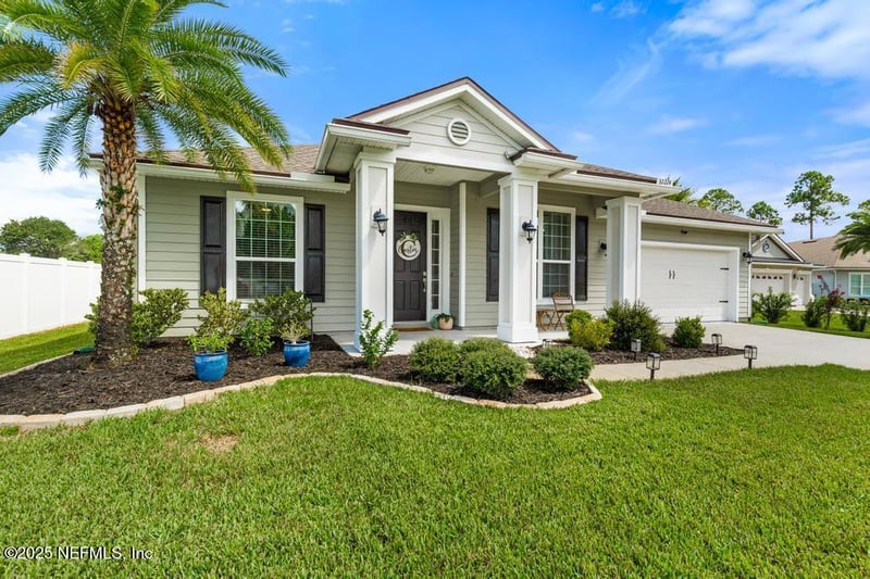 Listing details for 32224 Goldenrod Parke Ct, Fernandina Beach, FL 32034 : Massive backyard alert, run don't walk! Welcome to this pristine abode in the heart of Flora Parke. Tucked away on a cul-de-sac street, this beautifully maintained newer home sits on one of the largest lots in the neighborhood boasting incredible curb appeal and an adorable front porch. Step inside to discover a bright, open-concept layout designed for modern living. The spacious kitchen is a true centerpiece, featuring a generous island perfect for casual meals or gathering with family, complete with granite counters, custom white cabinets, SS appliances and a gorgeous tiled subway backsplash. A dedicated dining area and flexible bonus room, ideal for a home office, gym, or playroom, truly functional possibilities. Split-bedroom floor plan ensures privacy, with the luxurious primary suite thoughtfully separated from the two additional bedrooms. Step outside to your spacious screened patio, outdoor shed and firepit area! The expansive backyard provides a blank canvas for your vision , an entertainers paradise. Located just minutes from the pristine beaches and charming downtown of Amelia Island, this property seamlessly blends coastal convenience with suburban tranquility. Quick drive to 95 will have you in Jax or Kingsland in less than 30 minutes, location can't be beat. Don't miss this rare opportunity to own a large-lot home in one of the area's most desirable communities. NO CDD, low HOA. Schedule your showing before she's snagged!
