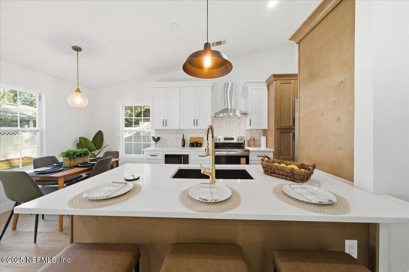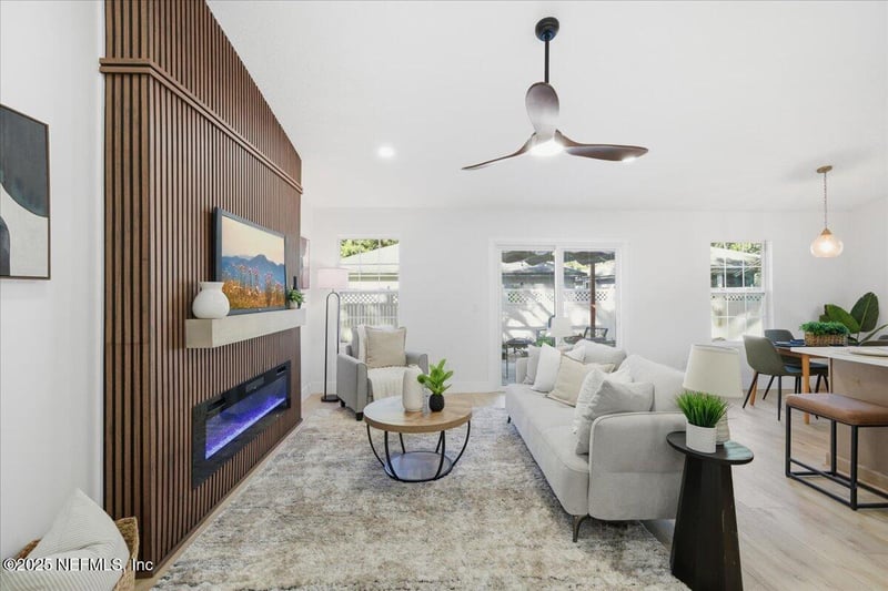 Listing details for 3295 Tinya Ct, Jacksonville, FL 32226 : Welcome to 3295 Tinya Ct -- a move-in ready home on a quiet cul-de-sac featuring a brand-new roof, new HVAC, and energy-efficient windows for true peace of mind. The bright quartz kitchen opens to a cozy living space with a modern fireplace. The primary suite offers a spa-style rain shower and custom California Closets. Enjoy a private backyard with pavers and pergola -- perfect for Florida evenings. Seller offering $5,000 toward closing costs with competitive offer. If you're looking for updated, clean, and worry-free -- this is it.