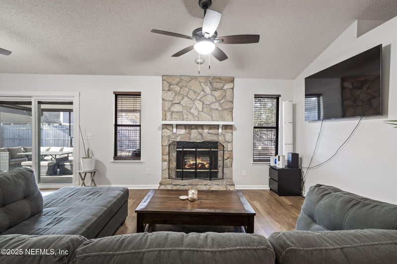 Listing details for 3314 Deerfield Pointe Dr, Orange Park, FL 32073 : Beautifully updated, modern and impeccably maintained home in a very desirable neighborhood. Low HOA includes Pool, tennis court and Clubhouse. Open floor plan with Gourmet eat- in kitchen and separate dining area. Stainless steel newer appliances compliment the white cabinetry in the kitchen. While a stone wood burning fireplace for warm and cozy evenings. Vaulted ceilings and wood beams give this home even more charm. New updated bathrooms with neutral decor. House has been painted inside and outside. Also, wood look ceramic newer flooring has been put in place. Large screened in porch gives extra space for entertaining. Fenced in yard, custom paver and fire pit also. Plenty of outdoor space .2 acre for kids and pets. They do not make homes like this anymore. Better than new construction! There is nothing to do but MOVE IN and enjoy this home.