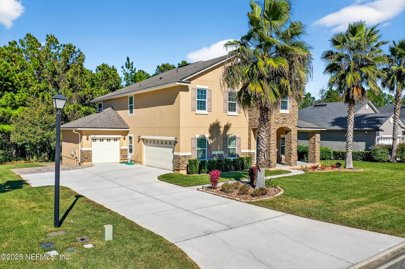 Listing details for 3315 Shinnecock Ln, Green Cove Springs, FL 32043 : Welcome to your dream home in the prestigious Magnolia Point Golf & Country Club, where luxury living meets resort-style amenities in a secure, 24-hour gated community. This beautifully maintained and freshly painted 5-bedroom, 3.5-bath residence features an elegant double-door entry that opens to oak-stained stair treads with iron spindles and spacious formal living and dining areas. The open-concept design flows into a generous family room and gourmet kitchen, complete with granite countertops and built-in stainless steel appliances, ideal for entertaining. A private downstairs bedroom with its own full bath offers flexibility for guests or multi-generational living. Upstairs, the expansive master suite boasts dual walk-in closets, double vanities, a garden tub, and a walk-in shower, while three additional bedrooms and a bonus room with powder bath provide ample space for family and guests. The home's curb appeal is enhanced by a side-entry two-car garage and a separate one-car garage, with pavers extending to a stunning backyard terrace overlooking a tranquil, private setting. Residents enjoy access to Magnolia Point's exceptional amenities including golf, tennis, swimming, and clubhouse diningvisit the club's website for full details and notify the gate for a pass to tour the facilities.