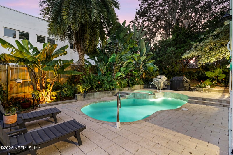 Listing details for 3336 Carmel Rd, St Augustine, FL 32086 : OPEN HOUSE 1/18/26 CANCELED Welcome to Tranquility. - This meticulously maintained 3-bedroom, 2.5-bath home offers over 2,100 sq ft of thoughtfully designed living space with an open layout, abundant natural light, and captivating views of the marsh from multiple levels. Step inside to discover elegant wood and tile flooring, a bright living area with sliding glass doors and large windows, and a cozy fireplace that adds warmth and charm to everyday living. The spacious interior flows seamlessly into the gourmet kitchen featuring granite countertops, stainless steel appliances, and 42'' cabinetry—perfect for both everyday meals and entertaining. The first level includes a versatile den/ bonus room—ideal for a home office, media room, or entertaining space. Retreat to the primary suite with generous closet space, a luxurious en-suite bath, and stunning marsh views. Outside, enjoy your own private pool and spa, surrounded by lush landscaping, making an exceptional setting for relaxation or poolside gatherings. This is truly a one-of-a-kind home and must be seen in person to be fully appreciated.