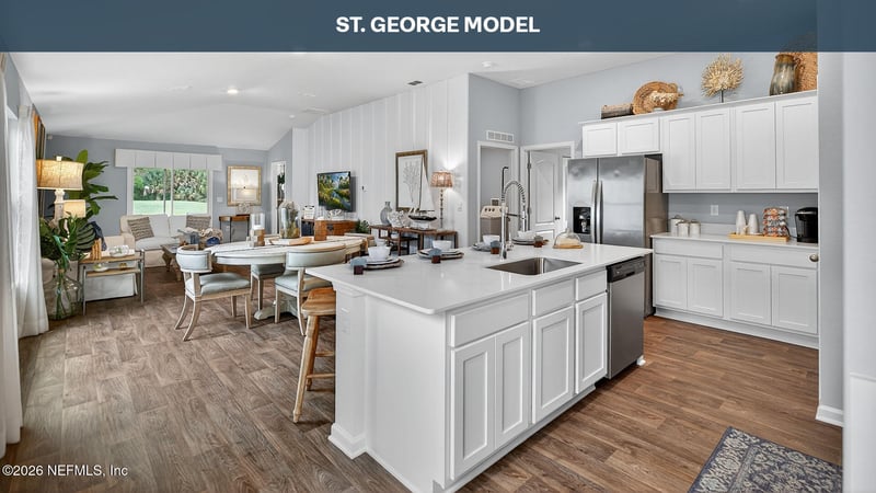 Listing details for 34 Divot Pl, Bunnell, FL 32110 : READY NOW! The St. George is a beautifully designed new home floorplan that offers both space and comfort with 1,779 square feet of living space. This single-story layout includes four bedrooms, two bathrooms, and a two-car garage, making it a smart choice for families or anyone who wants room to grow without sacrificing efficiency. From the moment you step inside, you will appreciate the open-concept layout that connects the kitchen, dining, and living spaces. Whether you're preparing meals or hosting guests, the layout keeps everyone connected. The kitchen is thoughtfully designed with modern features and offers plenty of counter space, including a central island that makes meal prep and casual dining easy. Natural light pours into the main living area through large windows, creating a bright and welcoming environment. The main suite is generously sized and includes a private bathroom with dual vanity and a large walk-in closet, offering the perfect retreat at the end of the day.
