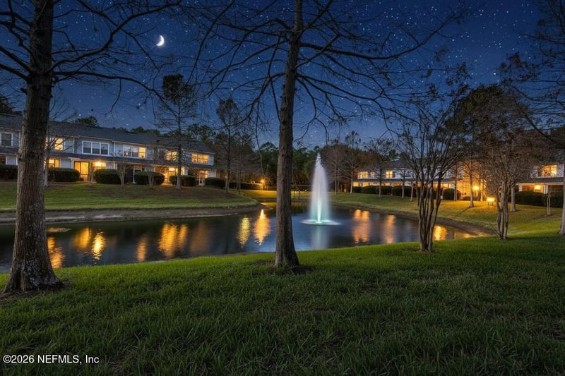 Listing details for 3495 Nightscape Cir, Jacksonville, FL 32224 : Beautiful corner two-bedroom townhome with serene pond views. The first-floor living area features tile and LVP flooring, offering both comfort and durability. Step outside to a spacious screened-in patio—perfect for enjoying Florida living. Upstairs, both bedrooms include private bathrooms and vaulted ceilings, creating bright and comfortable personal spaces. Located in the gated Wolf Creek community, residents enjoy amenities such as a pool, clubhouse, fitness, and more—prime location close to shopping and dining, and just 15 minutes from the beach.