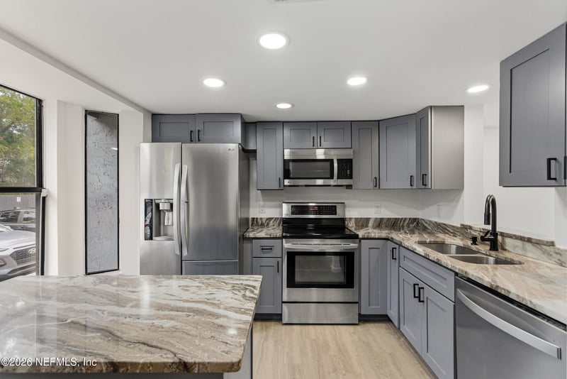 Listing details for 3517 Peeler Rd #17, Jacksonville, FL 32277 : Welcome home to this beautifully renovated 2-bedroom, 1.5-bath condo where the stunning kitchen takes center stage. Designed with both style and function in mind, the completely updated kitchen features brand-new cabinetry, sleek quartz countertops, and stainless-steel appliances, offering the perfect space for cooking, entertaining, or simply enjoying everyday living. The open-concept layout flows seamlessly from the kitchen into the bright and spacious living area, enhanced by updated flooring, fresh paint, and abundant natural light. Both bedrooms are generously sized with excellent closet space, while the updated bathrooms showcase clean, modern finishes. Step outside to your private balcony or patio--ideal for morning coffee or relaxing evenings. Located in a well-maintained community with convenient access to shopping, dining, parks, and major commuter routes, this move-in-ready condo offers comfort, style, and exceptional convenience. Easy to show.