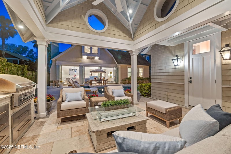 Listing details for 357 12th St, Atlantic Beach, FL 32233 : WELCOME HOME A truly distinct and exceptional beachside retreat, the overall ambiance of this coastal inspired 2-story home is one of simple elegance with modern yet warm interiors. Located on highly sought-after 12th Street in the charming seaside village of Atlantic Beach and only three short blocks to the sandy beaches of the Atlantic coast, this property was designed with family, friends and entertainment in mind. With 5,223 square feet of stunning spaces, this home is highlighted with exquisite design details complimented with coffered ceilings, oak wood flooring, shiplap walls, custom paint, and handcrafted woodwork. Built in 2011 by famed local builder Chris Lambertson of Elite Homes, this house was constructed to perfection with luxurious comforts and unique spaces that even the most discerning buyer would appreciate. . The Primary Suite is conveniently located on the main level along with the formal living and dining rooms, kitchen with sitting room, Florida room SEE MORE with casual dining and family room, and a newly added laundry room with a pet shower station. The second level hosts a large flex room with built-in desk space, three ensuite guest rooms, and another laundry room. By far, though, the pièce de resistance is the outdoor living area, pool, spa, pavilion, and pool house with a kitchenette and a full shower bath. The main house has a whole house GENERAC generator, as well as the pool house. Just outside this home paradise, within a few short blocks, is the lifestyle of the special beach community we call Atlantic Beach. Just 12 blocks south is Beaches Town Center offering restaurants, bars, coffee shops, boutiques, and galleries. 5 blocks west is the enjoyable and recently expanded and enhanced Atlantic Beach Country Club with golf, tennis, pickle ball, swimming, and fitness. Close to recreation parks, local farmers markets, shopping, fitness centers, and so many conveniences, with its modern finishes, charming features and captivating location, this home is truly a gem. Don't miss the opportunity to experience it firsthand. Contact me today to schedule a viewing.