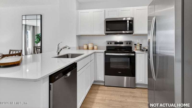 Listing details for 3576 Prancer Point, Middleburg, FL 32068 : Our new floor plan, the Sage townhome offers 1,427 square feet of thoughtfully designed living space with 3 bedrooms, 2.5 baths, and a 1-car garage which is perfect for comfortable, low-maintenance living. This open-concept floor plan is ideal for both everyday life and entertaining. The spacious kitchen features abundant counter space with quarts countertops and a bar that overlooks the gathering room, creating a seamless flow for hosting friends or enjoying family time. Sliding glass doors bring in an abundance of natural light, making the main living area feel bright and welcoming. Upstairs, the primary bedroom includes a generous walk-in closet and a well-appointed bath with beautiful quartz countertops. You'll find two secondary bedrooms along with a private owner's suite designed for relaxation. The additional bathrooms also feature quartz counters, adding a modern and cohesive touch throughout the home. The washer and dryer are also upstairs for convenience.