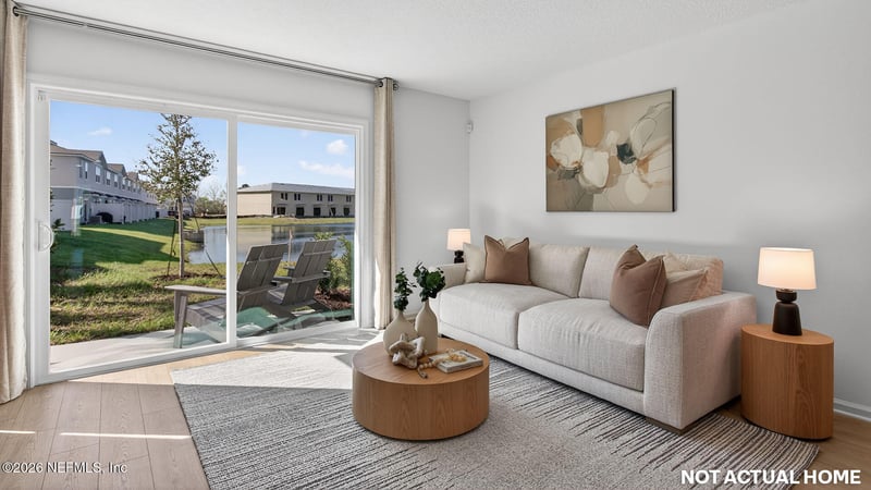 Listing details for 3580 Prancer Point, Middleburg, FL 32068 : Our new floor plan, the Sage townhome offers 1,427 square feet of thoughtfully designed living space with 3 bedrooms, 2.5 baths, and a 1-car garage which is perfect for comfortable, low-maintenance living. This open-concept floor plan is ideal for both everyday life and entertaining. The spacious kitchen features abundant counter space with quarts countertops and a bar that overlooks the gathering room, creating a seamless flow for hosting friends or enjoying family time. Sliding glass doors bring in an abundance of natural light, making the main living area feel bright and welcoming. Upstairs, the primary bedroom includes a generous walk-in closet and a well-appointed bath with beautiful quartz countertops. You'll find two secondary bedrooms along with a private owner's suite designed for relaxation. The additional bathrooms also feature quartz counters, adding a modern and cohesive touch throughout the home. The washer and dryer are also upstairs for convenience.