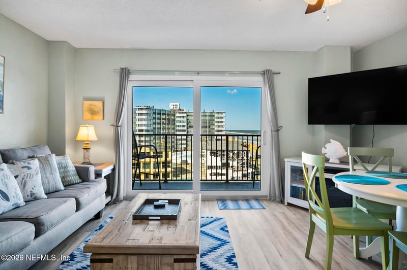Listing details for 3600 Ocean Shore Blvd #614, Flagler Beach, FL 32136 : Wake to the rhythm of the Atlantic at 3600 Ocean Shore Blvd #614, a true oceanfront escape in Flagler Beach. This 1-bedroom condo is filled with natural light, with sliding glass doors that open to a private balcony showcasing endless ocean views. The condo is perfect for sunrise coffee or unwinding to the sound of waves. The open living space flows effortlessly into a functional & fully remodeled kitchen , while the bedroom offers a calm, coastal retreat designed for rest and renewal. A rare highlight: this unit includes a coveted, transferable short-term rental license, allowing for immediate income potential or flexible personal use. Enjoy resort-style amenities including an oceanfront pool and direct beach access, all set in one of Florida's most authentic and laid-back coastal communities. This is more than a condo, it's a lifestyle, an investment, and your place by the ocean.