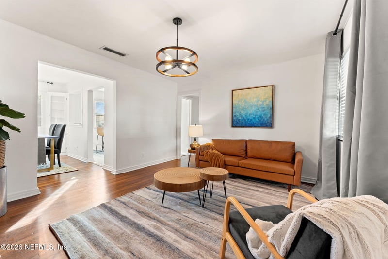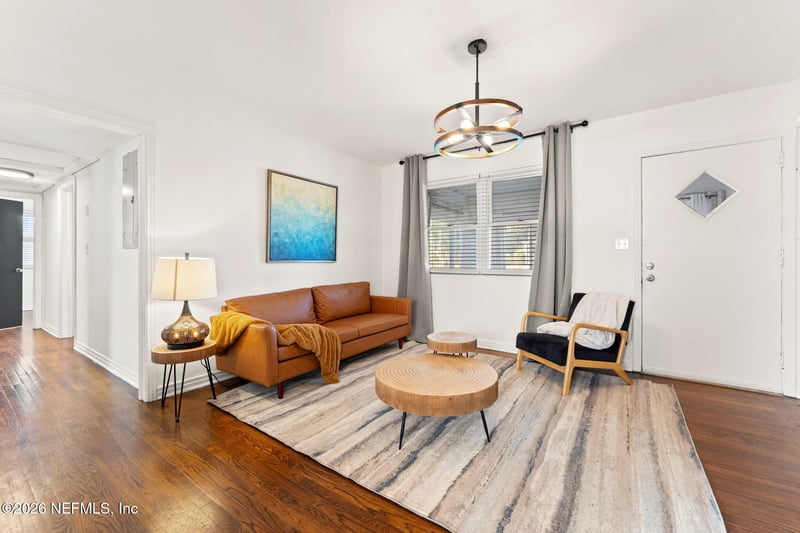 Listing details for 3605 Jammes Rd, Jacksonville, FL 32210 : Modern minimalist style meets thoughtful upgrades, perfect for the first-time Homebuyer or Investor. Eye-catching curb appeal begins with a bold black exterior accented by warm wood details, setting the tone for what's inside. Hardwood floors run throughout light-filled living spaces, enhanced by fresh interior paint and abundant natural light. The updated kitchen offers a clean, modern aesthetic and functionality for everyday living, while charming built-ins in the dining room add both character and storage. Step into the front sunroom and enjoy a five-person hot tub, perfect for relaxing or entertaining. The carport has been converted into a one-car garage—an exceptionally rare bonus for the neighborhood. Improvements include a roof replaced in 2015 and new pipes from the home to the street. All appliances convey, including Washer/Dryer, providing true move-in-ready convenience. Conveniently located about 3.5 miles from Riverside and Avondale - an exceptional opportunity!