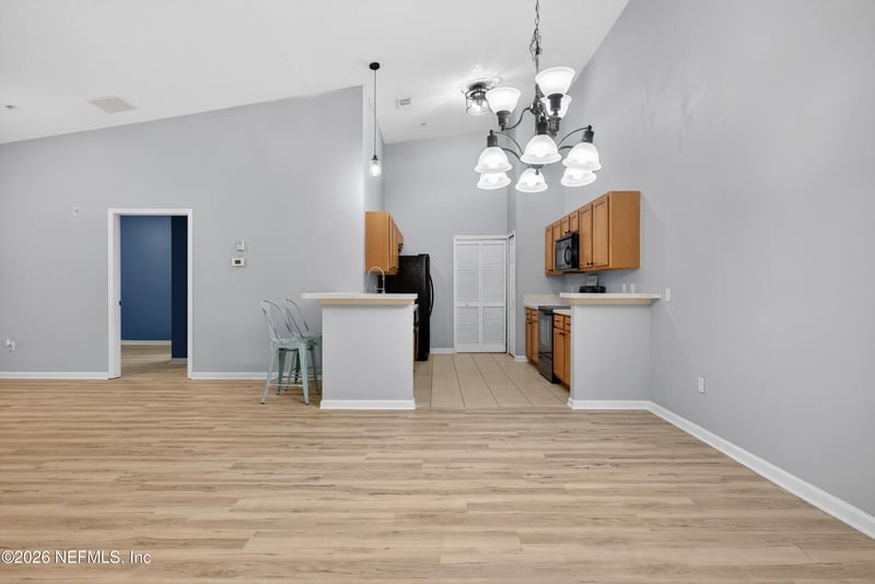 Listing details for 3690 Kirkpatrick Cir #7-12, Jacksonville, FL 32210 : Move-in ready condo featuring vaulted ceilings and a private back patio backing to peaceful wooded views—no rear neighbors. This beautifully updated unit includes brand-new luxury vinyl plank flooring, newly renovated countertops throughout, and a bright, functional layout with no deferred maintenance. Major mechanical updates provide peace of mind with a new HVAC system installed in December 2025 and a water heater replaced in 2021. The home is truly turnkey—no renovations needed. Conveniently located near I-295 with easy access to shopping, dining, and major employment centers, including close proximity to Naval Air Station Jacksonville. Whether commuting across town or heading to base, this location offers excellent connectivity and accessibility. HOA fees cover security, water, pool access, and outdoor lawn and facility maintenance, making this a low-maintenance, stress-free living option. Ideal for first-time homebuyers, downsizers, or investors seeking a well-maintained property in a desirable area of Jacksonville. Seller financing available for qualified buyers. Flexible terms may be considered.