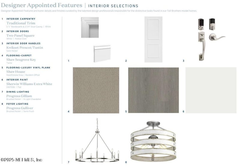 Listing details for 37 Callaway Cir, St Johns, FL 32259 : NEW TOLL BROTHERS HOME! Move in this Mar/Apr 2026! Discover this beautifully upgraded single‑story home tucked along a quiet road ending in a cul‑de‑sac and surrounded by wooded preserve in a private, gated community with no CDD fees. The interior features a modern, cool‑toned palette with luxury vinyl plank flooring in Heatherstone Grey and a stunning two‑toned kitchen—light cream perimeter cabinetry paired with a smoky chocolate island. Quartz countertops with dramatic grey veining, brushed nickel hardware, a modern stainless steel farmhouse sink, and a gourmet appliance package elevate the space. Large sliding glass doors open to an oversized covered lanai with a gas line ready for your grill. The primary bath impresses with a massive dual‑head Kohler shower finished in a tasteful blend of beiges and greys for a clean, modern contrast. Schedule an appointment to tour our model home and see this incredible homesite for yourself.