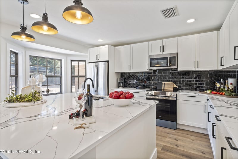 Listing details for 3715 Rustic Ln, Jacksonville, FL 32217 : **Seller is offering a $7,500 credit to be applied toward buyer's prepaid items, closing costs, or other allowable expenses at closing.** Welcome to 3715 Rustic Lane, a stunningly renovated, move-in ready brick home located on a peaceful, tree-lined street in one of Jacksonville's most sought-after neighborhoods. This 3-bedroom, 2-bathroom home spans 2,011 square feet and sits on a generous 0.37-acre lot, offering both space and privacy with no HOA or CDD fees. Originally built in 1965, this home has been fully updated in 2025 with high-end finishes and modern systems throughout. The spacious and open layout features brand-new wood flooring, a cozy fireplace, and a show-stopping kitchen with a massive quartz island, custom cabinetry, and all-new plumbing fixtures. Both bathrooms have been completely remodeled with elegant, modern finishes. In addition to the bedrooms, there is a full-sized office or flex room that provides the perfect space for remote work, a playroom, or a guest area. Enjoy peace of mind with updated plumbing and electrical systems, a brand-new water heater, and a fully serviced AC system with all new parts. The roof was replaced in 2015. The property also features well water and a septic system, eliminating monthly water or sewer bills. Located just down the street from the prestigious Bolles School and minutes from the St. Johns River, this home offers unmatched convenience to top-rated schools, shopping, and dining. With its spacious layout, designer upgrades, and prime location, this property is a rare find and truly move-in ready. Come see what makes this home so special before it's gone. Some photos include virtual lawn enhancement for illustrative purposes only, current yard conditions may vary.