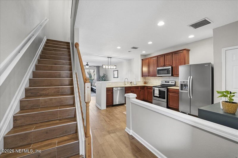 Listing details for 3726 Windmaker Way, Jacksonville, FL 32224 : Beautifully-updated townhome in the heart of Jacksonville! Well-appointed & 2-stories in highly sought-after Wolf Creek community, this property has 3 bedrooms, 2.5 baths, and a tasteful refresh. Porcelain tile on the 1st Floor & on the stairs. Brand new carpet on the 2nd Floor! Primary Bedroom can easily accommodate king-sized bed & primary bath has been fully updated w/ tile walk-in shower, brand new mirrors, new quartz vanity, & new tile floors! New quartz vanities installed in all baths. Brand new lighting, fans, hinges, & door handles throughout w/ split bedrooms and open floor plan. Stainless Steel appliances in kitchen & more than ample counter space for prepping & cooking. Fully-equipped laundry room upstairs & attached 1-car garage. Newer HVAC (2021) & Water Heater (2022). Centrally-located, 30 min from JAX Airport & Downtown Jax, & 10 min from the beaches! Don't miss the chance see this well-kept 3-bedroom townhome in Wolf Creek!