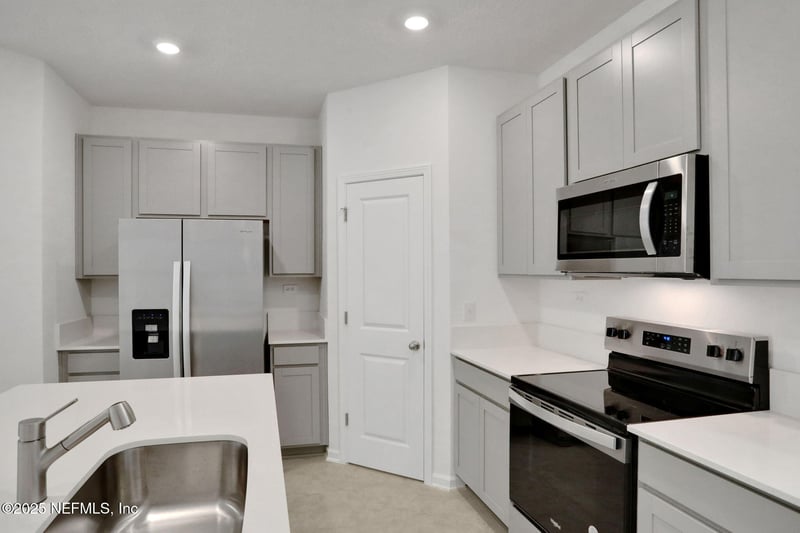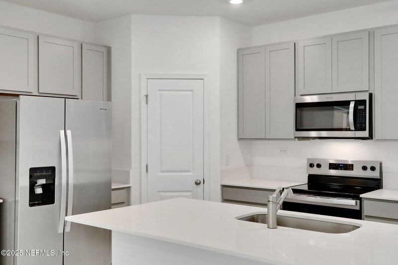 Listing details for 3769 Athenian Way, Middleburg, FL 32068 : Welcome to the Cayman - a pristine 2026 built, 2-story townhome offering 1,433 sq ft of thoughtfully designed living space. Step inside this 3-bedroom, 2.5-bathroom residence and be greeted by an open-concept main floor that effortlessly blends style and functionality. The gourmet kitchen is a standout, featuring sleek stainless steel appliances, shimmering Quartz countertops, a large center island with breakfast bar seating, and abundant cabinetry. It flows seamlessly into the bright dining and living areas, creating the perfect backdrop for both everyday living and entertaining. Upstairs, retreat to the spacious primary suite complete with a generous walk-in closet and a luxurious en-suite bathroom boasting dual vanities and a glass-enclosed shower. Two additional well-appointed bedrooms, a full bathroom, and a conveniently located laundry closet round out the second floor.