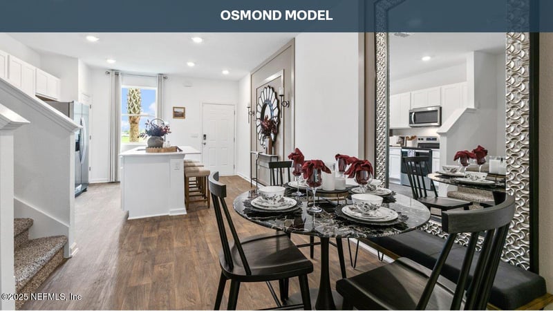 Listing details for 38 Montellano Rd, St Augustine, FL 32084 : Enjoy Spacious Living and Smart Design with The Osmond. This Express Series townhome offers more than meets the eye. With 1,109 square feet, this beautifully crafted plan is the perfect blend of comfort and style with 2 bedrooms and 2.5 bathrooms. The Osmond's open-concept layout features a spacious kitchen which flows into a cozy living room, perfect for everyday living and entertaining. The large kitchen bar allows guests to gather and socialize while preparing meals. The sliding glass door leads to a covered patio allowing for seamless indoor and outdoor living. Upstairs, the main suite is your personal escape, complete with a roomy bathroom, vanity, and walk-in closet. Modern finishes and energy-efficient features make this home as practical as it is beautiful. The Osmond comes with D.R. Horton's exclusive Home Is Connected® smart home package, giving you integrated smart devices to keep you connected and in control.