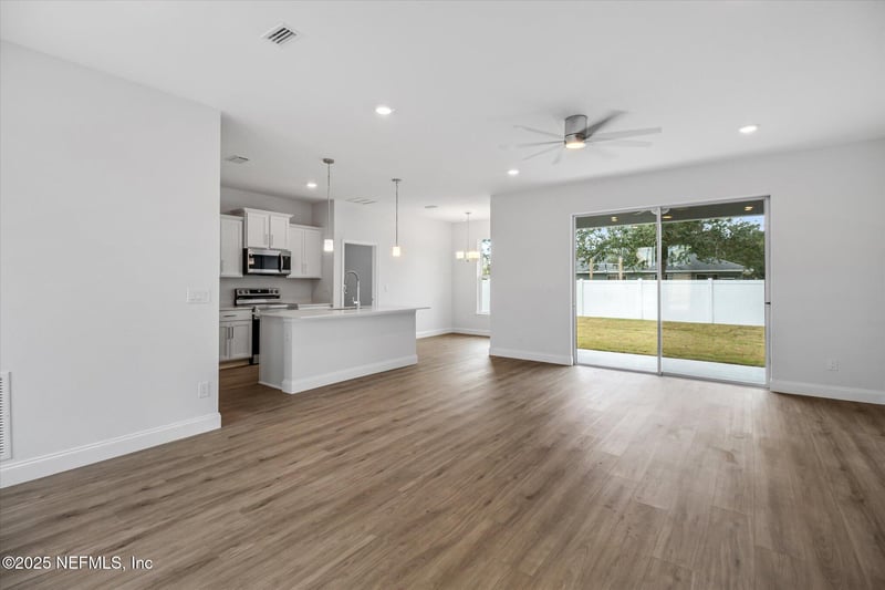 Listing details for 38 Sea Front Trl, Palm Coast, FL 32164 : MOVE IN READY! UP TO $7,500 IN BUILDER INCENTIVES!! NO ORIGINATION FEES - NO APPLICATION FEES, With our approved lender & $18,350 UPGRADES INCLUDED!! Under Construction- Welcome to your dream home, where luxury meets modern comfort. This stunning new construction features LVP flooring throughout, a grand 8' designer front door, soaring 9'4'' ceilings, and a seamless indoor-outdoor flow with an 8' sliding door to the lanai. The open floor plan is enhanced by designer lighting, elegant molding, and stylish doors. The gourmet kitchen includes shaker cabinets, quartz countertops, and stainless steel appliances. Bathrooms chrome faucets, and fixtures, and tiled walls for a timeless, spa-like experience. Photos are of the model home at 182 Bayside Dr.