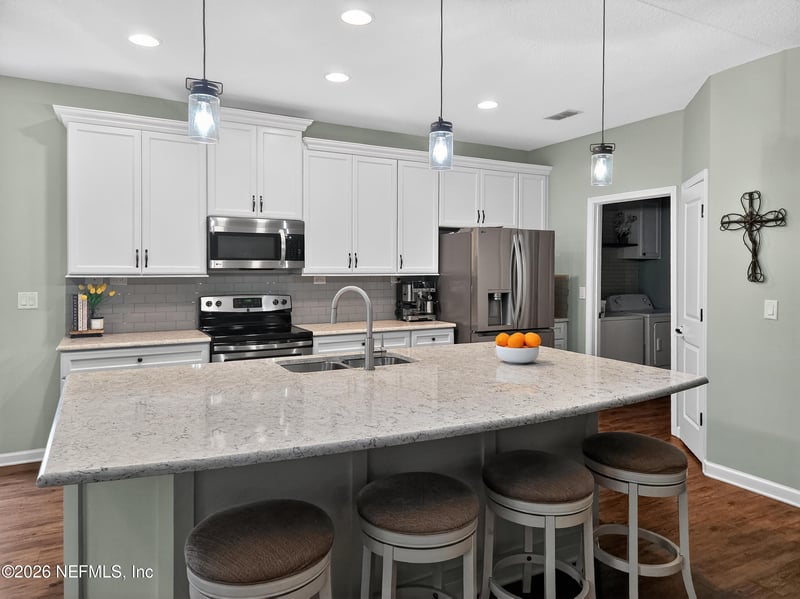 Listing details for 3824 Hammock Bluff Dr, Jacksonville, FL 32226 : Rare Preserve-View Sanctuary on a Private Cul-De-Sac Escape the standard suburban feel with this stunning 2017-built, 4-bedroom, 2.5-bath home plus flex space. Positioned on a quiet cul-de-sac in the sought-after North Hammock community, this home offers a level of privacy and tranquility rare for the 32226 area. The Interior: The bright, open floor plan features a versatile front flex room--ideal for an office, playroom or dining. The heart of the home is a chef-ready kitchen boasting premium Quartz countertops, a large island, and stainless appliances flowing into the living area anchored by a cozy wood-burning fireplace. Retreat to the primary suite with a large walk-in closet and a bathroom featuring a soaking tub and separate shower. The Outdoors: Step through the sliders to a private retreat backing onto a lush, protected preserve. Enjoy a screened-in lanai and a fully fenced-in backyard featuring professional upgrades, including an expansive paver walkway and custom fire pit area with zero rear neighbors. Key Features: -Premium Lot: Cul-de-sac location with total privacy. -Financial Advantage: Low HOA & NO CDD FEES. -Prime Location: Minutes from River City Marketplace & JAX Airport. Seller is happy to work with buyer agents; contact for details regarding concessions. Pre-approval/POF required for all showings.