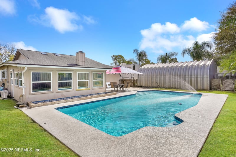 Listing details for 3962 Demery Dr, Jacksonville, FL 32250 : MOTIVATED SELLER + LENDER INCENTIVES! This home offers it all AND it's in one of the most desirable neighborhoods in Jacksonville Beach, Isle of Palms! Situated on an oversized, fully-fenced lot, the property includes a large pool, newer patio area, and a versatile Quonset hut perfect for a boat, RV, or workshop - a great space to get creative! Inside, the fresh paint and vaulted ceilings give it a nice, bright feel, whilst the updated flooring, natural light, and wood-burning fireplace add to the charm! The sunroom extends the living space and overlooks the pool and backyard, which makes it perfect for relaxing or entertaining. The kitchen features wood cabinetry and plenty of storage. The primary suite includes an en-suite bath and walk-in closet. Additional highlights: no HOA and just minutes from Mayo Clinic, a boat ramp, shopping, dining, & the beach. Updates: Roof (2020), HVAC (2019), Water Heater (2020), Water Softener (2020).