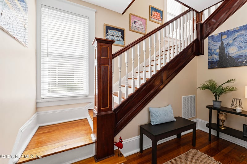Listing details for 402 6th St, Jacksonville, FL 32206 : Welcome to this beautifully restored Colonial Revival home, nestled on one of the largest lots in the sought-after Historic Springfield neighborhood. Constructed of solid concrete block, this home blends classic charm with thoughtful updates—and includes the rare bonus of a 1-car garage, offering both convenience and extra storage. Inside, you'll find a warm and inviting interior with newly refinished hardwood floors that run throughout the living spaces. The floor plan is spacious and welcoming, perfect for hosting guests or enjoying quiet evenings at home. The home features three bedrooms and three full bathrooms, each thoughtfully designed with comfort and style in mind. The kitchen has been updated with sleek stainless-steel appliances, adding a modern touch while complementing the home's historic character. Additional upgrades include new blinds, fresh paint, updated light fixtures, and a recently upgraded furnace—ensuring both style and efficiency. With its timeless architecture, generous layout, and ideal location, this home captures the true spirit of Historic Springfield. Don't miss the opportunity to make this special property your own.