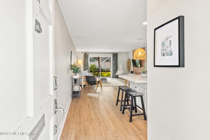 Listing details for 405 Flagler Blvd #2A, St Augustine, FL 32080 : Situated in a highly sought-after area on Anastasia Island, this gorgeous 2BD/1BA ground-floor condo offers an upgraded lifestyle of simplicity and comes fully furnished! Currently used a successful short term rental and offered turn key. The layout seamlessly integrates the kitchen, dining, and living areas, perfect for hosting gatherings, features a sliding door that leads to a covered rear porch with views of the communal courtyard. Recently upgraded from top to bottom offering spacious bedrooms arranged in a split layout, sharing a central bathroom. Benefits include off-road parking and a covered carport. The condominium fees cover water, trash and sewer expenses, and short-term rentals are permissible as per the CAM, making it an ideal investment or second home. This condominium is ideally positioned in David Shores, only a brief stroll or bike ride from the numerous attractions St. Augustine boasts. You can cycle to the historic district of St. Augustine, explore the farmers market, or enjoy a concert at the St. Augustine Amphitheater. Additionally, Anastasia State Park is nearby for leisurely walks, and a variety of excellent local restaurants and shops are within easy walking distance. Welcome!