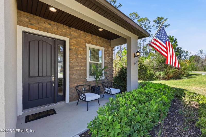 Listing details for 410 Wingstone Dr, Jacksonville, FL 32081 : Indulge in refined luxury within one of Nocatee's most exclusive gated communities. This immaculate home offers unmatched privacy, backing to a lush wooded preserve that creates a serene, picturesque setting. Sophisticated interiors showcase soaring ceilings, gorgeous wood flooring, and a gourmet kitchen appointed with stainless steel appliances, rich quartz countertops, walk in pantry, designer cabinetry and also a fabulous laundry room. Retreat to the screened lanai and savor peaceful preserve views. A cozy entry for morning coffee or a quiet book, and a large, light filled office with more than enough room to become a bedroom for guests when needed. . Check out the expansive kitchen, LR and Primary BR w/Jacuzzi tub! These flexible living spaces suit a variety of lifestyles. Additional features include a tankless water heater & new HVAC, plus low-maintenance living with HOA-covered lawn care, irrigation, exterior upkeep (paint & roof), for lock & leave convenience! Enjoy a sparkling community pool and cabana just steps away, along with miles of scenic Nocatee trails. Residents also have full access to Nocatee's world-class amenities. Conveniently located close to US1 and I-95, near A rated schools and several local churches with all of this is located within 15 minutes of toes in the sand to the Atlantic Ocean. Come live the lifestyle in Nocatee.