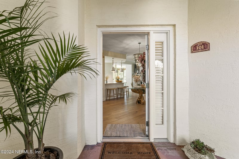 Listing details for 415 Ocean Grande Dr #101, Ponte Vedra Beach, FL 32082 : Back on Market- contingency expired-Ground Floor, extraordinary coastal luxury end unit, open BRIGHT, quiet, UPDATED, spacious condominium at Ocean Grande in South Ponte Vedra Beach with breathtaking marsh, intracoastal sunset views. Boasting the largest square footage in the complex, this 3 Bed/3 Bath Condo spans 2,239 SQFT. Interior renovations over the years include: White Oak hardwood flooring, refrigerator, kitchen backsplash, kitchen cabinetry, dolomite countertops, custom lighting, washer/dryer, Pure Air Filtration HVAC with Smart Thermostat (new in 2024,) and fresh paint. Enjoy the wraparound screened porch with new built-in gas grill. Living room opens to dining area, breakfast nook and kitchen. Expansive owner's suite has remarkable natural light and a slider to the porch. Dual custom closets open to primary bathroom with soaking tub, shower and dual vanities, guest baths have Quartzite countertops with vessel sinks. OVERSIZED one-car garage with generous storage area.