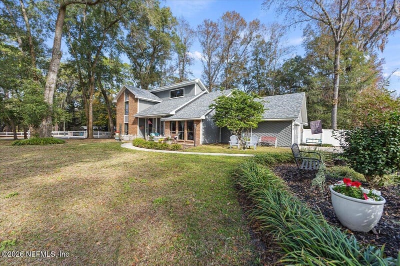 Listing details for 417 Cheryl Ct, St Johns, FL 32259 : Rare find in St. Johns County—this ½-acre homesite offers space, privacy, and no HOA or CDD fees, making it ideal for RV and boat parking. Located in the desirable Old Fruit Cove area, the home is close to the St. Johns River, as well as dining, shopping, and entertainment along SR-13, Racetrack Rd, and the Durbin Pavilion Town Center, while still tucked away in a quiet community. The property offers beautiful curb appeal with mature trees, a wide setback, and a side-entry oversized two-car garage. The home features vaulted ceilings, wood flooring downstairs, and a wood-burning fireplace that adds warmth and character. The versatile layout includes two flex rooms—one upstairs and one downstairs—ideal for a home office, playroom, yoga den, or additional living space. Enjoy the spacious kitchen with wood cabinetry, recessed lighting, newer appliances, a breakfast bar, and a cozy eat-in breakfast nook. The primary suite on the first floor offers a walk-in closet, window seat, stand-alone shower, and dual vanity. A guest bedroom and bathroom are located on the first floor, with two additional bedrooms and a bathroom upstairs. Enjoy the fully fenced backyard, perfect for gardening, pets, or summer barbecues. Additional highlights include a new septic system, well pump for home and irrigation, and ample space for RV and boat parking. This property offers a rare combination of land, flexibility, and lifestyle without HOA restrictions.