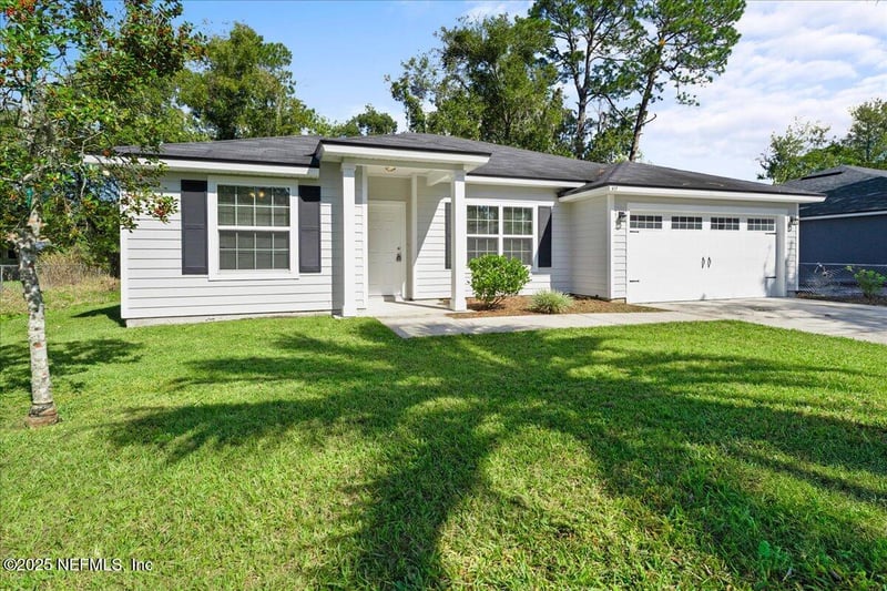 Listing details for 417 Sago Ave, Jacksonville, FL 32218 : Wonderful Opportunity! Appealing, newer one-story residence, well-located near the Airport & River City Marketplace w/ 4 bedrooms & 2 baths. Clean and pristine, and ready for a quick closing! Abundant Living Space, Generously-Sized Kitchen w/ Ample of Counter Space. LVP in all Bedrooms, Bathrooms, & Living Areas. Split Bedrooms with Open Floor Plan. BRAND NEW STAINLESS STEEL WHIRLPOOL KITCHEN APPLIANCES! Newly Repainted Interior & Exterior! Primary Bedroom can easily accommodate a King-Size bed & Primary Bath has Garden Tub w/ a Shower. Laundry Room inside to make life easier. Spacious 2-Car Garage w/ newly Epoxied Flooring and recently serviced HVAC & Septic Systems. NO HOA or CDD in Community! Conveniently Located to River City Marketplace, countless Nature Preserves & Sanctuaries, JAX Airport, Downtown Jax, & the beaches! Schedule your showing now!