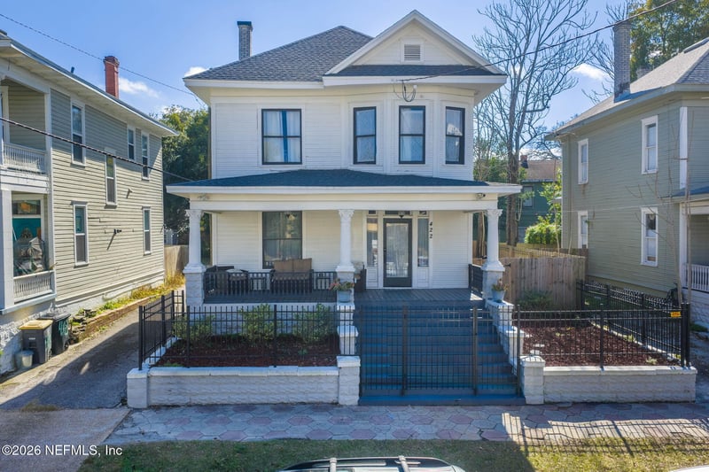 Listing details for 422 7th St, Jacksonville, FL 32206 : Welcome to this Beautiful Home with an Eye-Catching Front Porch surrounded by the Beautiful Fence and Staircase to the Front Door. The Owners have taken Great Care to Preserve the Beauty and Timelessness of this 100+ year old home. The Original Wood Floors both Upstairs and on the Main Floor have been Sanded, Sealed and Restored to their Natural Beauty, and the Baseboards and Casings throughout the Interior have been Preserved as well. You will find an Updated Kitchen with Custom Range Hood, Quartz Countertops and Newer Appliances as well as Tastefully Updated Bathrooms. Every Space has been given a Fresh Touch; Let's Add even More Value. 4-Year-Old Roof, Re-Wire and a Re-Pipe as well as New Duct Work all completed within the Last 4 Years. Fully Fenced with Gate Entry from each Side of the Home. Great Opportunity as an Investment as an AIRBNB or VRBO. Completely Move-In Ready, Set your Appointment Soon