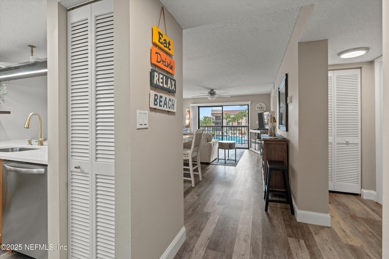 Listing details for 4250 A1a South Unit E26, St Augustine, FL 32080 : Enjoy the beach life in this beautifully updated and fully furnished second-floor condo just steps from the sand in the popular gated community of Ocean Village Club. Renovated with care and high-quality finishes, this move-in ready home features luxury vinyl plank flooring throughout and a thoughtfully designed kitchen with quartz countertops, modern cabinetry, under-cabinet lighting, stylish backsplash, stainless steel appliances including an induction range, and a stack washer-dryer. The spacious split-bedroom layout offers refreshed bedrooms, while both bathrooms showcase newly tiled showers, raised vanities, and timeless finishes. Relax in the inviting living area or step out to the covered lanai with views of the heated pool. Ocean Village Club stands apart from other beachside communities with its expansive grounds, abundant green space, ample parking, and generous distance between buildings which are rare finds this close to the ocean. Residents enjoy resort-style amenities including two pools (one oceanfront), tennis courts, shuffleboard, fitness center, picnic/grill areas, and private beach access. Monthly fees include cable, Wi-Fi, landline with U.S./Canada calling, water, and sewer. Additional upgrades include a newer AC installed March 2024, full repipe, and paid reserves through 2029, saving $2,250 for the buyer. Ideal as a beach home, second home, or vacation rental, with a prime location near restaurants, shopping, and just minutes to historic downtown St. Augustine. This is coastal living at its best!