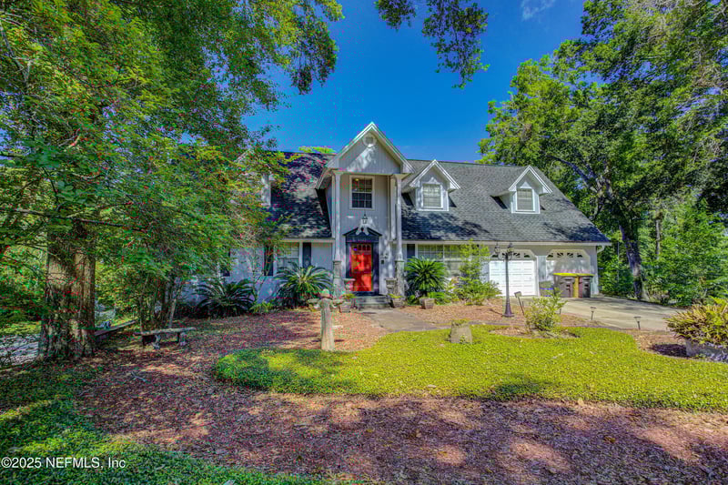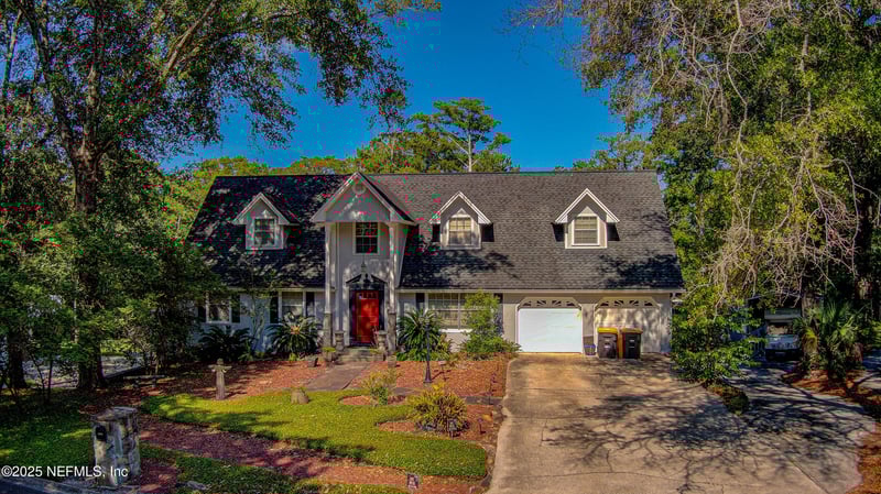 Listing details for 4302 Buck Point Rd, Jacksonville, FL 32210 : Car collector's paradise with water access on over ½ acre! This custom 3-story home boasts 6 garage spaces 4 bays in the rear (~2,100 sq ft) plus a 2-car garage upfront and 2 RV ports for extra storage. The huge garage level includes a full bath and A/C, perfect for an in-law suite, workshop, or hobby space. Enjoy peaceful canal access leading to the St. Johns River, ideal for boating, fishing, and relaxing, with plenty of room to build your private dock. Inside, explore a unique, maze-like layout with two offices, a huge master suite with sitting area and oversized closet, plus a third-floor bedroom featuring a kitchenette and walk-in closet with his-and-hers sections. The gourmet kitchen shines with porcelain tile counters, oak cabinets, large island with veggie sink, and built-in desk nook. Spacious living and dining areas overlook serene creek views from nearly every room. Don't miss this rare combination of space, water lifestyle, and custom design. Call today this one won't last