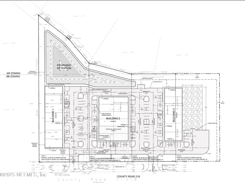 Listing details for 4302 County Road 218, Middleburg, FL 32068 : Here is a great opportunity. 4 lots consisting of 4.77 acres that are partially cleared with BB zoning that has a shovel ready flex warehouse complex that is permitted. All the leg work has been done. The project is permitted for 3- flex warehouses totaling 38,400 sq ft consisting of 25 units. These lots are located close to everything, not in a flood zone, no wetlands and on a road that is currently expanding to 4 lanes for the growing traffic needs, just across from Omega (Ball Field) Park (county owned). Water and sewer across the road, electric available. Agent holds vested interest in the property. Buyer to do their own due diligence. Parcel #'s- 09-05-24-005953-843-00, 09-05-24-005953-844-00, 09-05-24-005953-845-00, and 09-05-24-005953-846-00