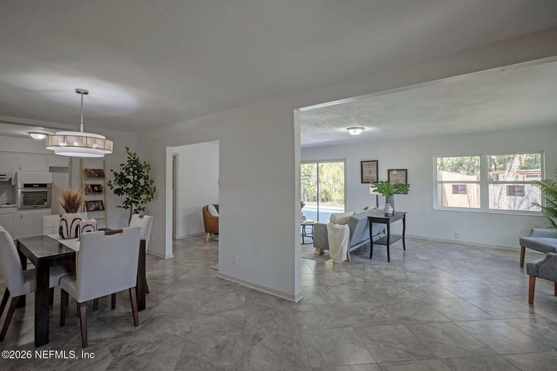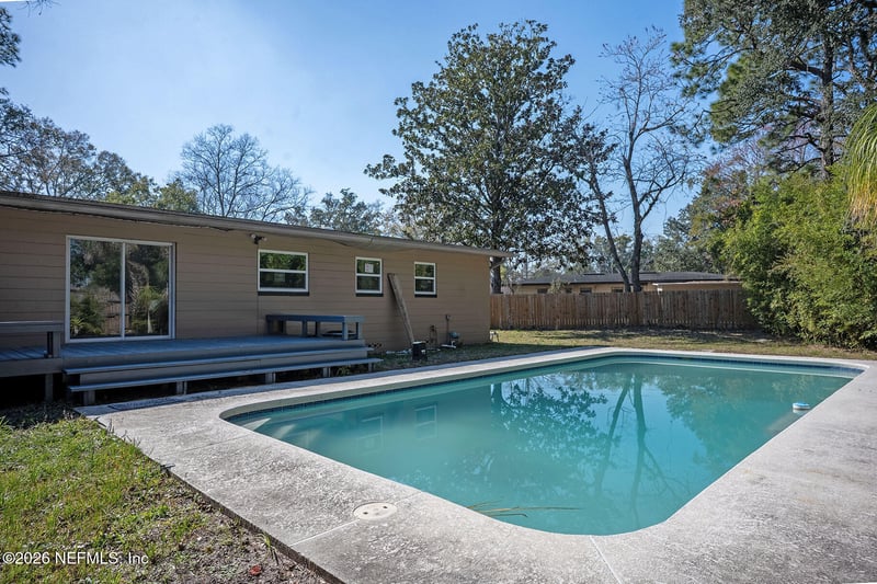 Listing details for 4302 Ish Brant Ct, Jacksonville, FL 32210 : Fantastic Pool Home - Fully Renovated & Move-In Ready! This beautifully updated 3-bedroom, 2-bath residence with a dedicated downstairs office offers the perfect blend of comfort, style, and functionality. Thoughtfully renovated throughout, the home features an upgraded kitchen with modern countertops, brand-new appliances, and ample cabinet space—ideal for everyday living and entertaining alike. The spacious living room is filled with natural light and overlooks the expansive covered back porch and sparkling pool, creating a seamless indoor-outdoor flow perfect for gatherings or quiet evenings at home. Tile flooring throughout adds both elegance and durability. Step outside to your private backyard retreat complete with a large fenced yard, offering plenty of space for pets, play, or relaxation. This move-in ready pool home truly delivers the best of Florida living.