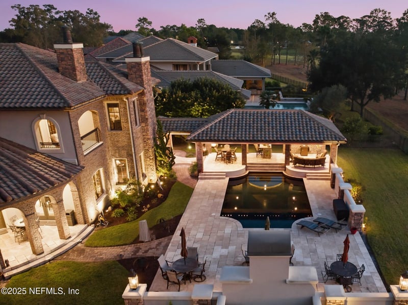 Listing details for 4430 Glen Kernan Pw, Jacksonville, FL 32224 : For the very first time, Glen Kernan's iconic ''Castle House'' is opening its doors, offering a rare opportunity to own one of Jacksonville's most exclusive and private estates. This Mediterranean masterpiece sits on an expansive golf-to-lake homesite and delivers unmatched architecture, craftsmanship, and character. A grand circular drive leads to the signature turret tower, both dramatic and timeless. Inside, sweeping ceilings, custom ironwork, intricate stone detailing, and a breathtaking spiral staircase create elegance at every turn. The brilliant floorplan offers formal and casual living spaces, a showpiece library, an entertainer's chef's kitchen with hidden prep kitchen and butler's pantry, and a dedicated primary wing with private balcony overlooking the course, sitting room with wet bar, wood-burning fireplace, and a luxury-inspired spa retreat.... The home's resort-style outdoor living is equally extraordinary. Through a series of French doors, the interior flows seamlessly to an expansive poolside portico complete with outdoor fireplace, dining space, and panoramic views of Glen Kernan's championship golf course and tranquil lake. Every sunset becomes a private showpiece. Additional highlights include elegant guest suites, an elevator, hand-crafted woodwork and stone features throughout, and a level of architectural detail that has made this property truly one of a kind. Set within one of Jacksonville's most exclusive country club communities, offering golf, tennis, swim, fitness, and dining, this estate presents an unmatched opportunity to own a true piece of Glen Kernan history. Iconic, unforgettable, and available for the very first time.