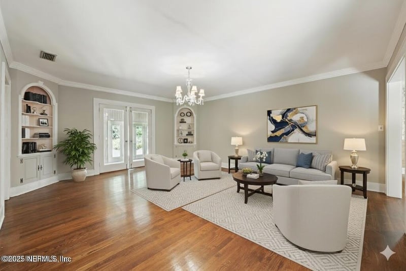 Listing details for 4441 Ortega Farms Cir, Jacksonville, FL 32210 : Tucked along the quiet side of the river, this nearly 3-acre Ortega Farms estate invites you to slow down, breathe deeper, and create your own legacy of moments. Morning coffee in the sunroom as the sun rises over the water. Afternoons spent splashing in the pool. Evenings gathered around the fireplace, wood crackling, laughter echoing through warm rooms filled with hardwood floors and gentle light. With 5 bedrooms and 4 baths, the home itself is generous, welcoming, lived-in in the best possible way. It carries a sense of history that makes you feel something the moment you walk in. Wide living spaces open to river views. A cozy wood-burning fireplace anchors the room where stories will be shared for years. And the private guest suite offers room for loved ones to stay close, yet comfortable. Outside is where the magic expands. Towering trees wrap the property in quiet privacy. A guest cottage offers its own little world — perfect for visiting family. See it today.