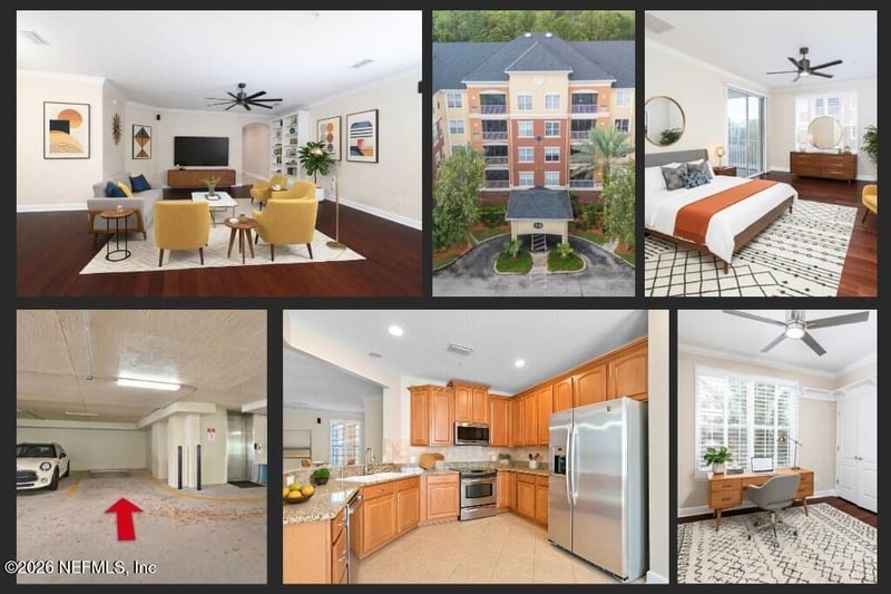 Listing details for 4480 Deerwood Lake Pw #232, Jacksonville, FL 32216 : Welcome to this 3rd-floor corner condo in Deerwood Place! With a dedicated garage parking space and indoor elevators, this unit is tucked just steps from groceries, restaurants, and nightlife. You'll love being close to everything while enjoying total peace and quiet once inside! Meticulously cared for, the open layout shines with hardwood floors, granite countertops, stainless steel appliances, and a smart thermostat. All appliances stay, including the washer/dryer and water softener. Big-ticket updates are already done: HVAC (2022), water heater (2023), and a full exterior makeover with new roof and stucco (2023). Plantation shutters, crown molding, built-in cabinets, and plenty of storage throughout. Relax on the screened patio or take advantage of community perks like the pool and fitness center. This move-in ready condo has it all! Schedule your tour, you'll want to call it home!