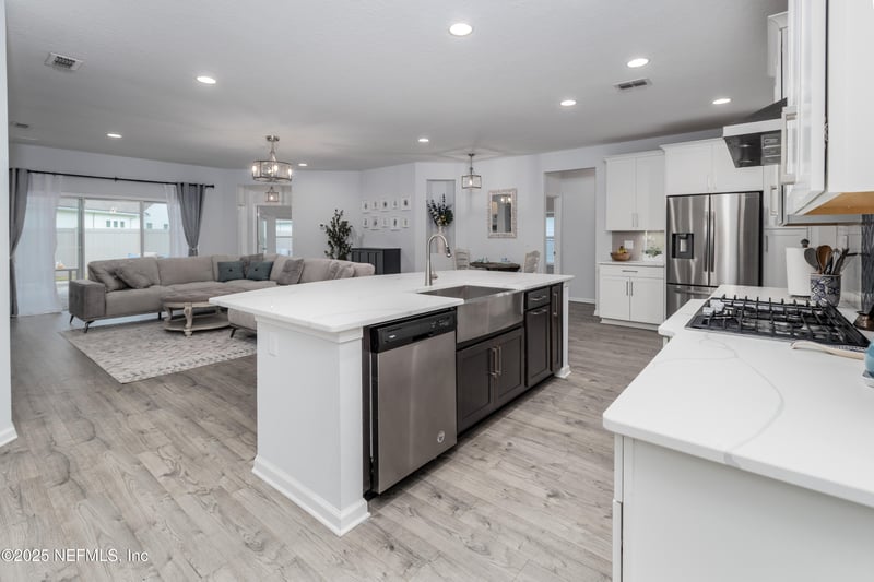 Listing details for 45 Totten Way, St Augustine, FL 32092 : Immaculate 4BR/3BA/3-car garage home in Shearwater - The Falls! This spacious 2,754 sq ft layout features a desirable 3-way split plan, first-floor flex space, formal dining room and dedicated office. Stunning wood-look tile, custom accents, and built-in media center create a modern yet warm interior. Gourmet kitchen offers quartz countertops, gas stove, open-concept island, oversized walk-in pantry (11' deep)!, and butler station. Retreat to a luxurious primary suite with double walk-ins, dual vanities, super shower & garden tub. Enjoy outdoor living with a covered paver patio, summer kitchen, natural gas grill, firepit, & fenced yard. Additional highlights: pool bath, gas tankless water heater, central vac, security system, water softener, and separate laundry. Low HOA, Property insurance under $100 month! Great location in St Johns County —near shopping, lots of options for dining out and new major retailers. Residents of Shearwater enjoy new top-rated K-8 schools in the community!